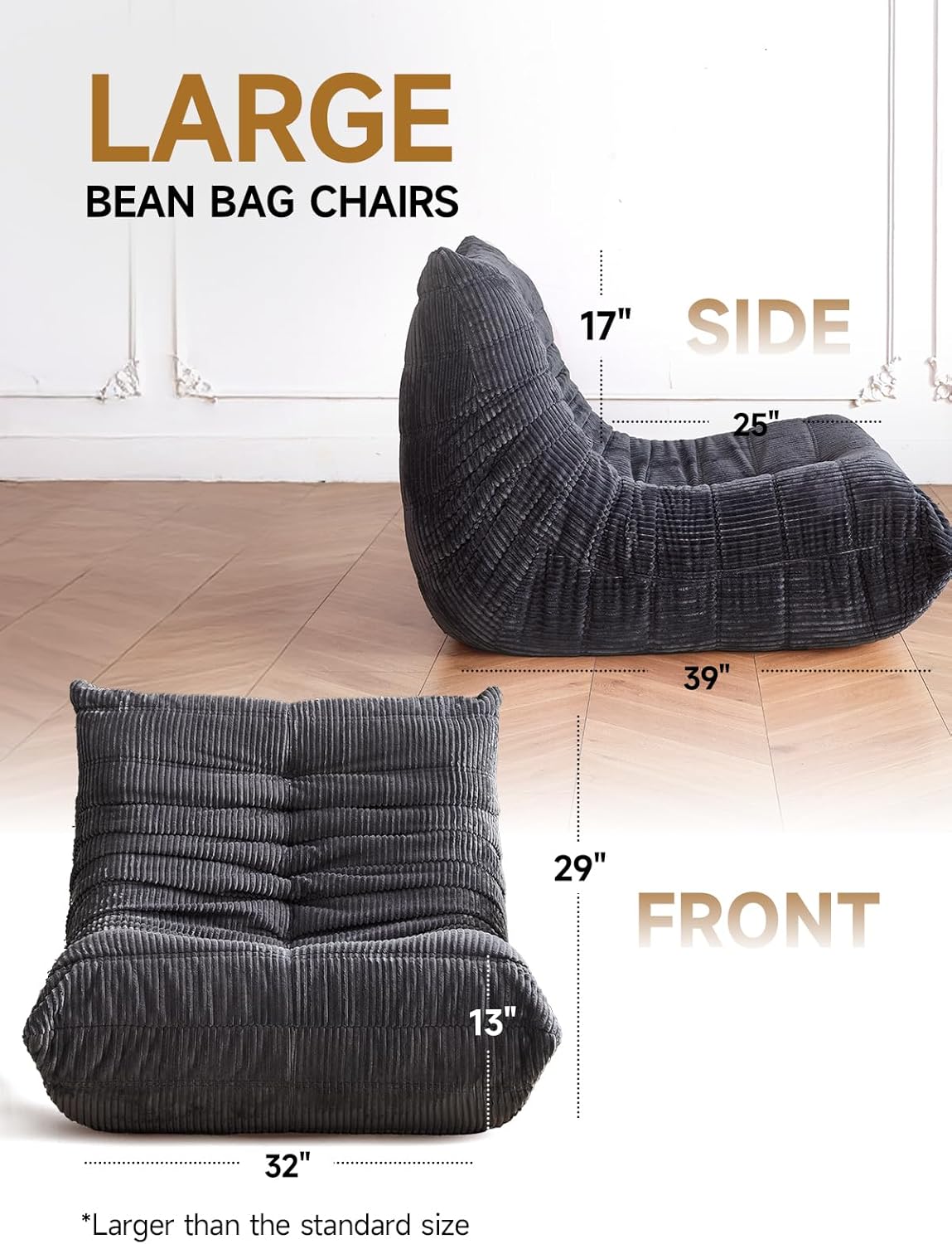 • Premium Corduroy Comfort – Soft and Durable: Made with thick, plush corduroy fabric that feels warm and velvety to the touch; The beanbag ridged texture adds visual depth while offering excellent wear resistance; A cozy, stylish bean bag chairs for adults, perfect for living rooms, bedrooms, dorms, and reading corners
